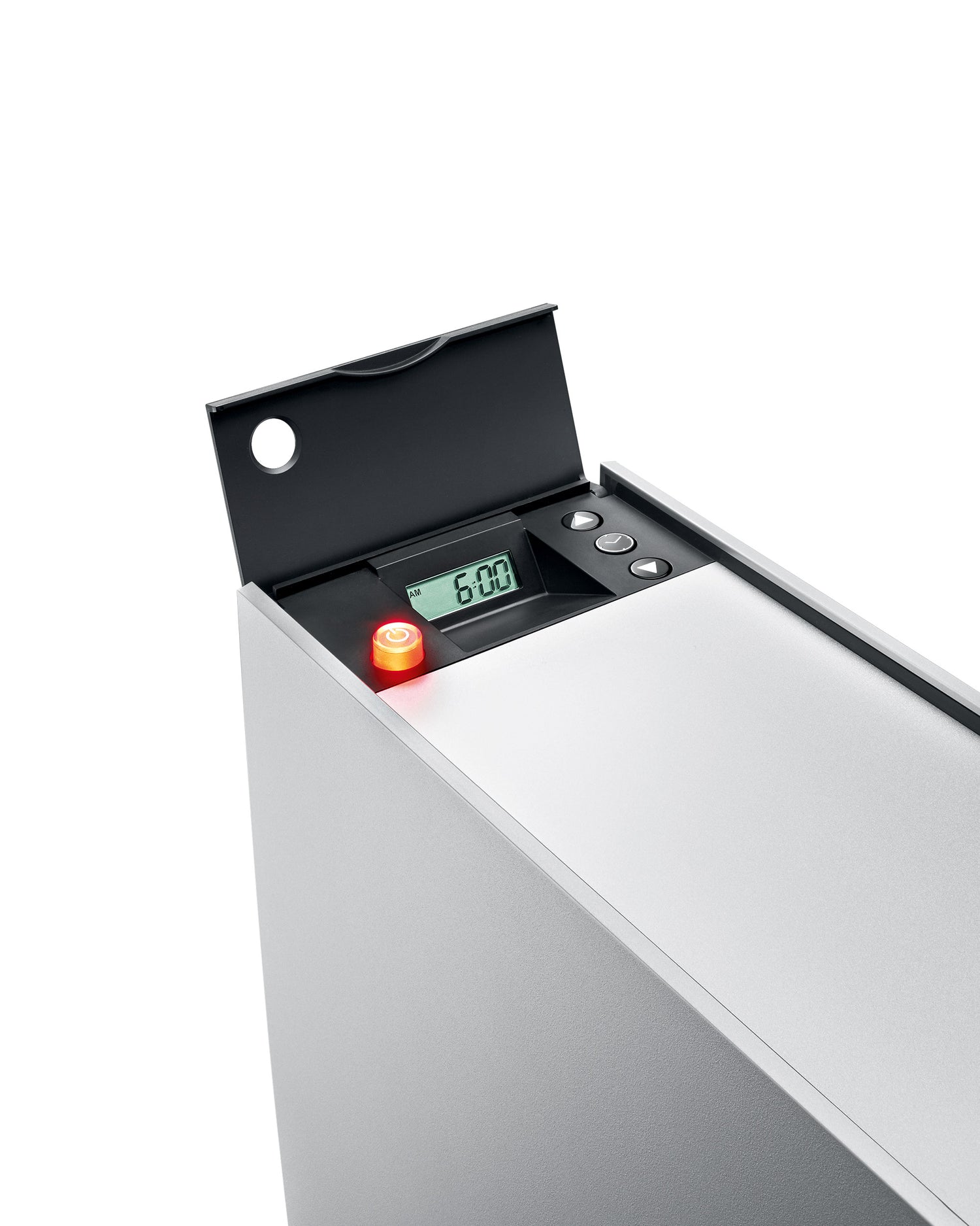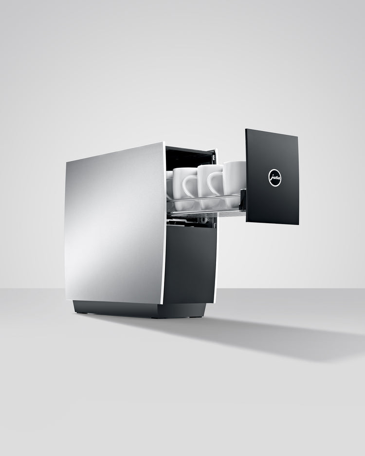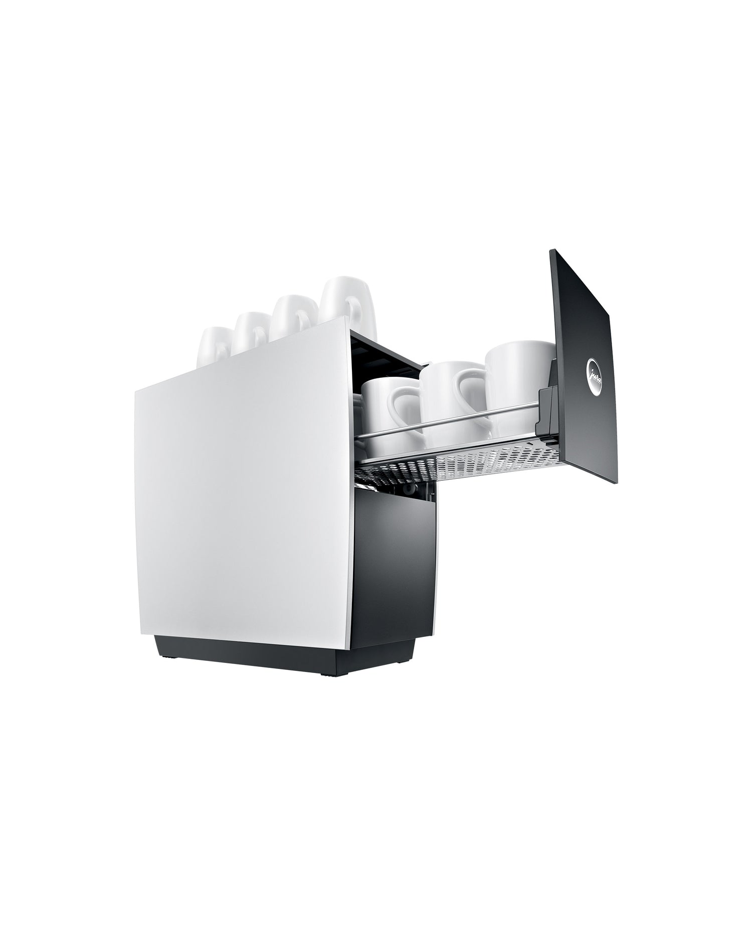 En revanche, des tasses préchauffées permettent le développement de tout le bouquet d’arômes. L’élégant chauffe-tasses JURA aux formes élancées est un complément idéal pour toutes les machines automatiques à café. Deux éléments chauffants maintiennent les tasses placées à l’intérieur de l’appareil à une température constante d’environ 55 °C, parfaitement adaptée à la préparation de spécialités allant de l’espresso ardent au cappuccino couronné de mousse de lait. Un support de tasses en aluminium à chauffage passif est également disponible sur le dessus du chauffe-tasses.