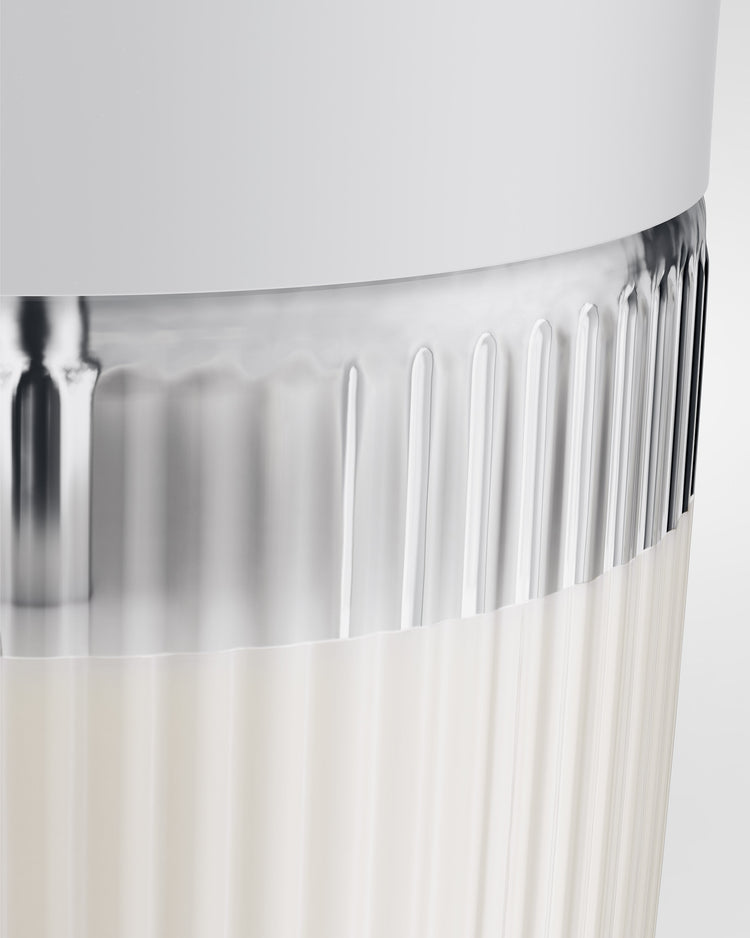 Avec sa surface striée, la carafe à lait est à la fois esthétique et ergonomique. Le couvercle à capuchon pivotant souligne également son aspect fonctionnel et décoratif lors du remplissage. Les deux adaptateurs en silicone bien distincts offrent un système pratique pour l’utilisation de boissons végétales. Par sa taille, la carafe à lait trouve sa place dans chaque réfrigérateur.