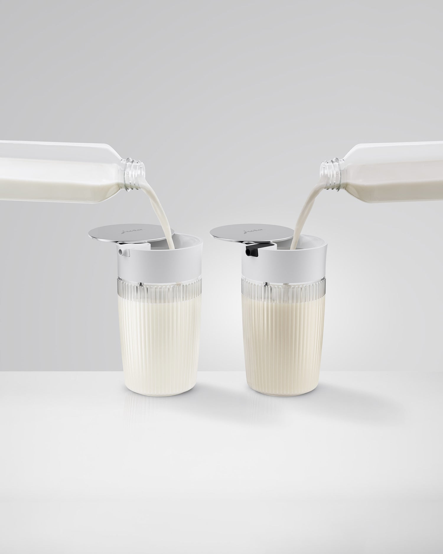 Lait de vache ou boisson à l’avoine ? Les deux adaptateurs en silicone blanc et noir fournis avec la carafe à lait vous permettent de distinguer clairement son contenu. Résultat : vous éliminez tout risque de confusion sans faire de compromis sur le style.