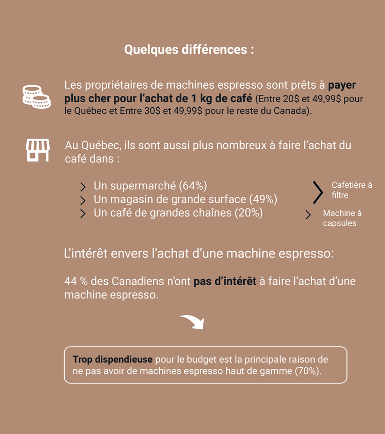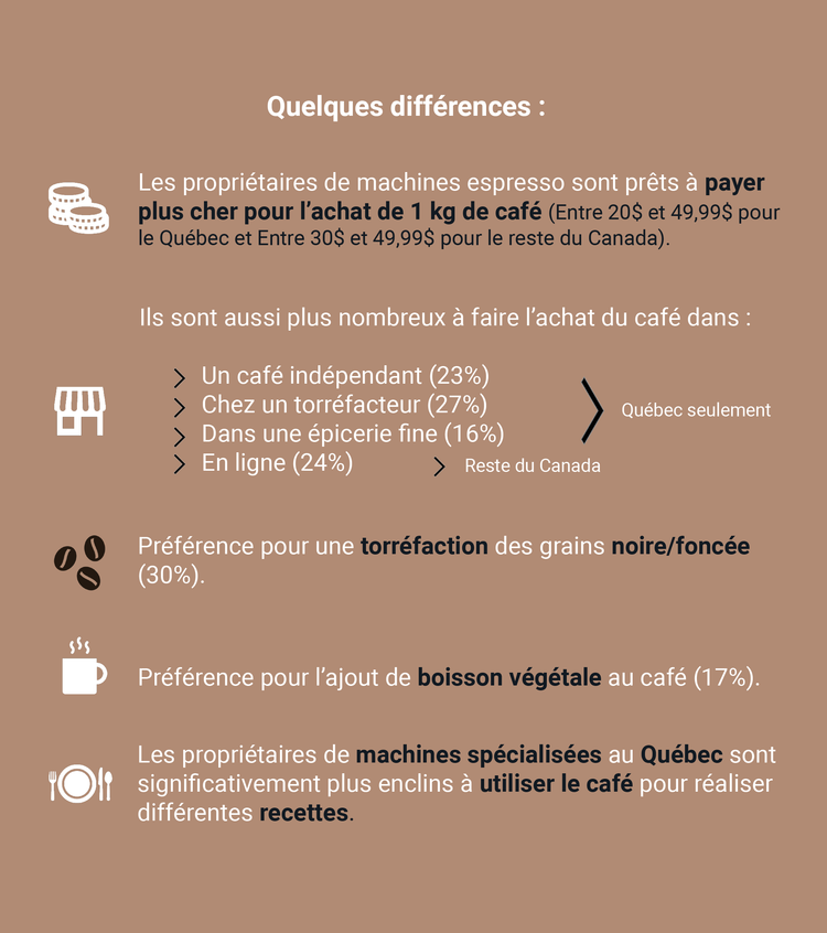 Les Québécois et les gens du reste du Canada possédant une machine espresso sont significativement plus nombreux à acheter du café en grains.