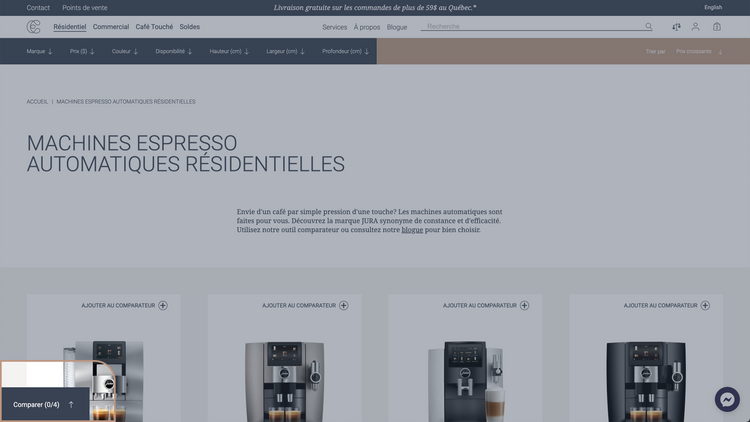 Vous trouverez, au coin supérieur droit des photos des machines résidentielles automatiques et manuelles, le bouton « ajouter au comparateur». Appuyez sur ce bouton pour sélectionner les produits à comparer.